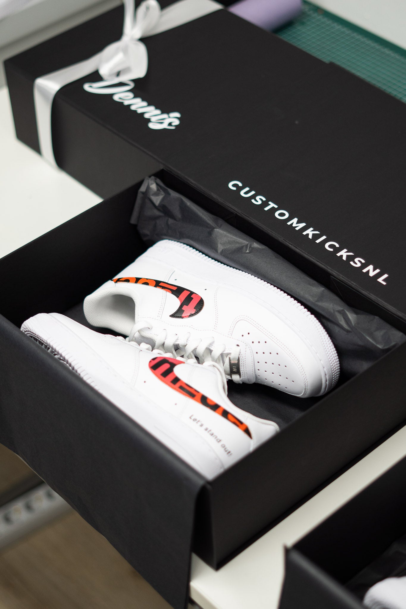 Voor dit energieke bedrijf mocht ik in totaal 16 paar sneakers in Trademade stijl maken. De klant kwam zelf met een ontwerp die we verder hebben uitgewerkt. Bij deze levering mochten we ook luxe schoenendozen voorzien met naam-opdruk. Dit maakt het een nóg mooiere overhandiging!